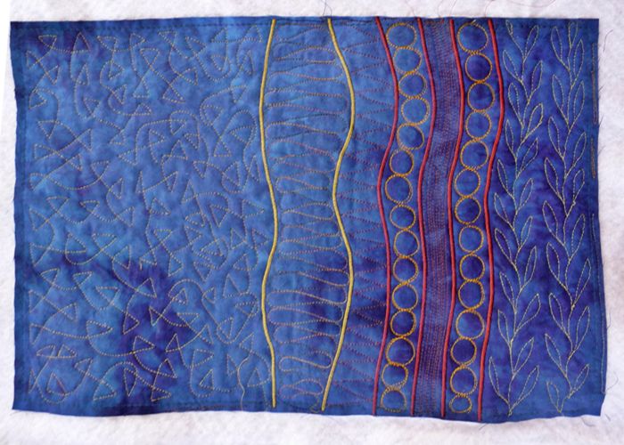 I have a selection of threads I have collected over the years for decorative stitching. I have shiny rayon, variegated, metallic…whatever the thread, it is important to test it first on a quilt sandwich.