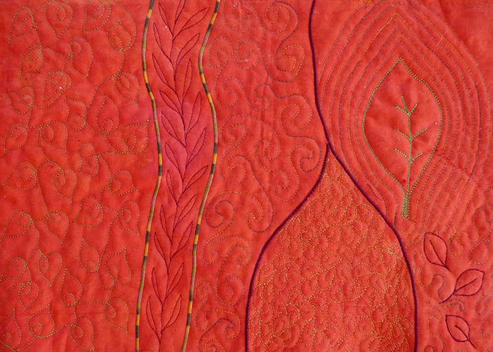 Once I had the cover measurements set, I placed the cut fabric on top of a piece of batting, machine basted the edge to keep it in place and then went crazy with a bit of thread art.